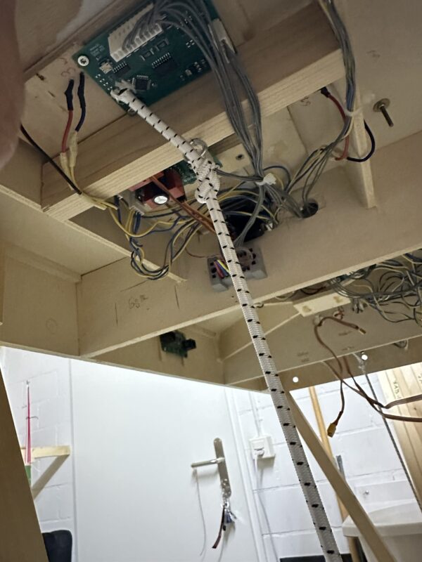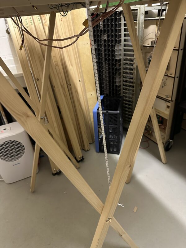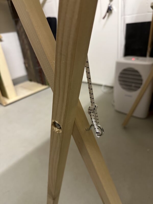 Unter den Modulen habe ich eine Strebe zwischen den Beinhaltern eingebaut, von der ich ein Gummiseil aus dem Segelsport ans Kreuz der X-Haxn führe und so die Beine “oben halte”…